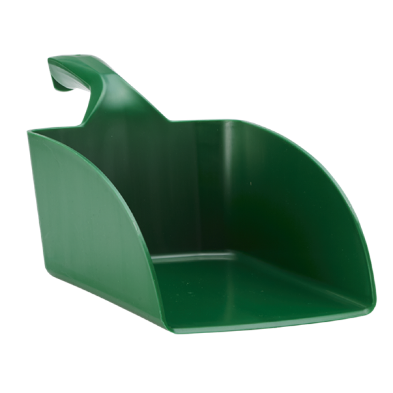 This large version is able to pick up abot 2 litres of product and the high back means the scooped up produce does not spill out easily. The neck joint is very robust and can withstand strong downward pressure. Examples; spices, flour,rice, ice.