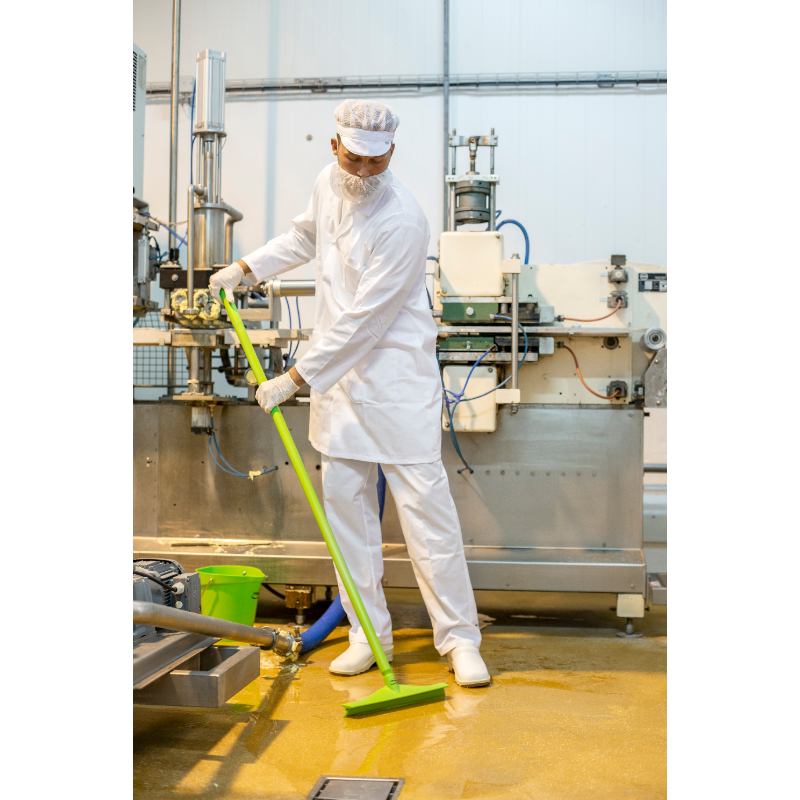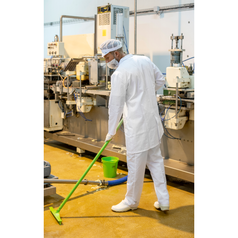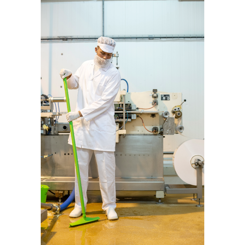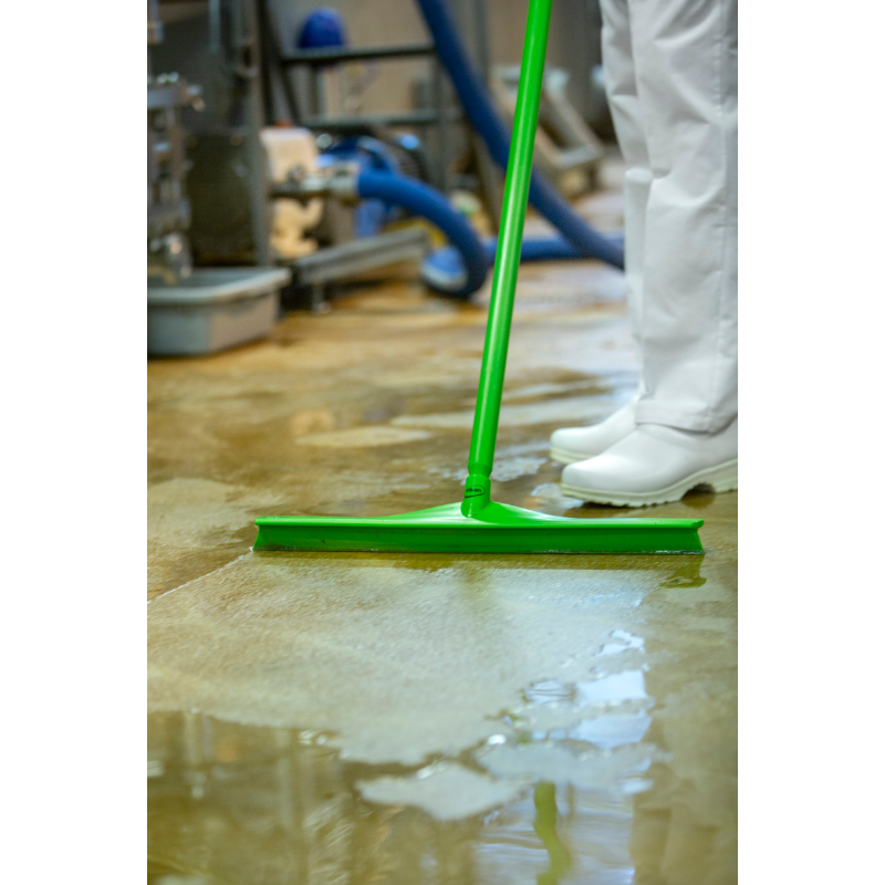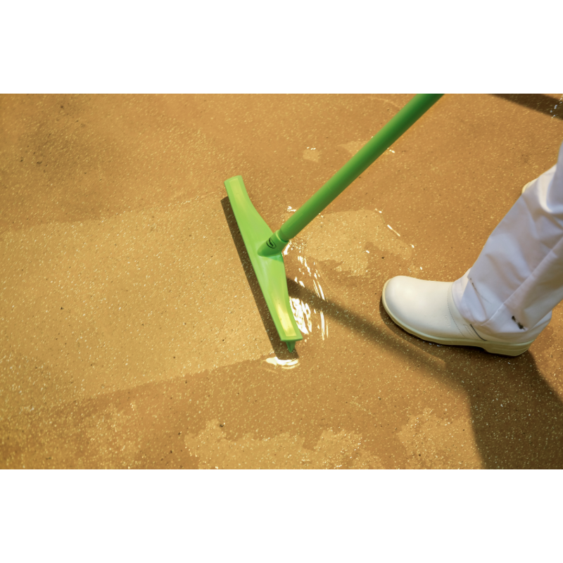 Ultra hygienic squeegee, combines optimum hygiene with effective water removal from walls, floors and table surfaces. The angled blade allows the squeegee to remove water from corners and other difficult to reach areas. The squeegee’s splash guard ensures that the liquid is not splashed onto the dried surface.