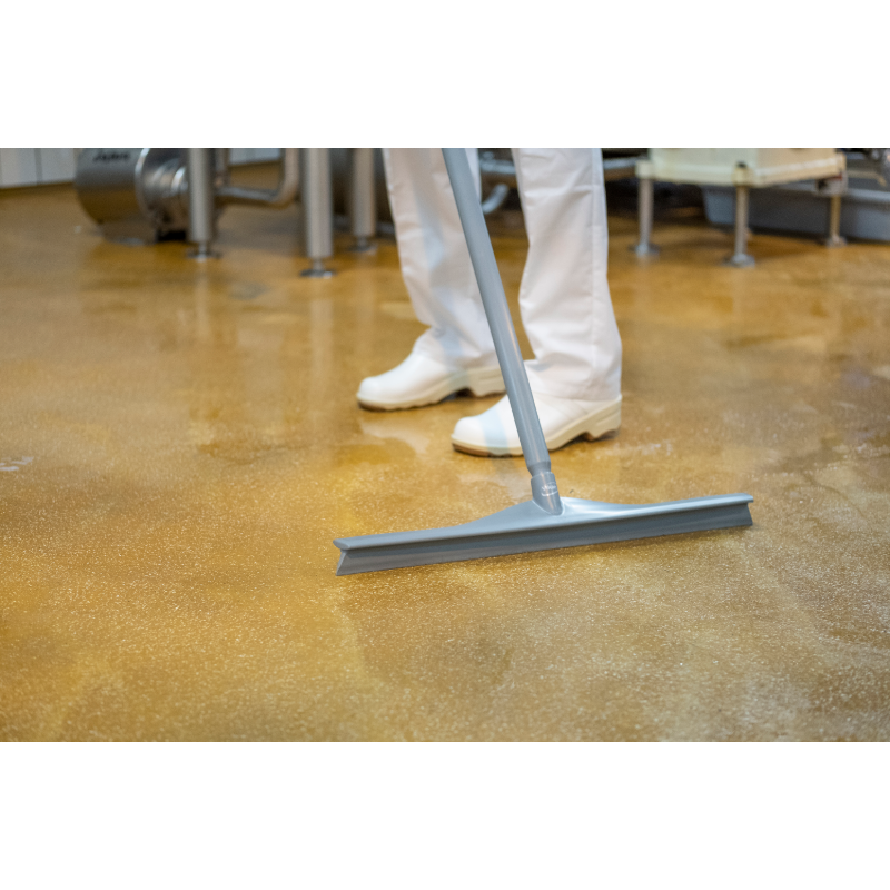 Ultra hygienic squeegee, combines optimum hygiene with effective water removal from walls, floors and table surfaces. The angled blade allows the squeegee to remove water from corners and other difficult to reach areas. The squeegee’s splash guard ensures that the liquid is not splashed onto the dried surface.