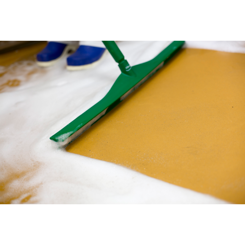 Ultra hygienic squeegee, combines optimum hygiene with effective water removal from walls, floors and table surfaces. The angled blade allows the squeegee to remove water from corners and other difficult to reach areas. The squeegee’s splash guard ensures that the liquid is not splashed onto the dried surface.
