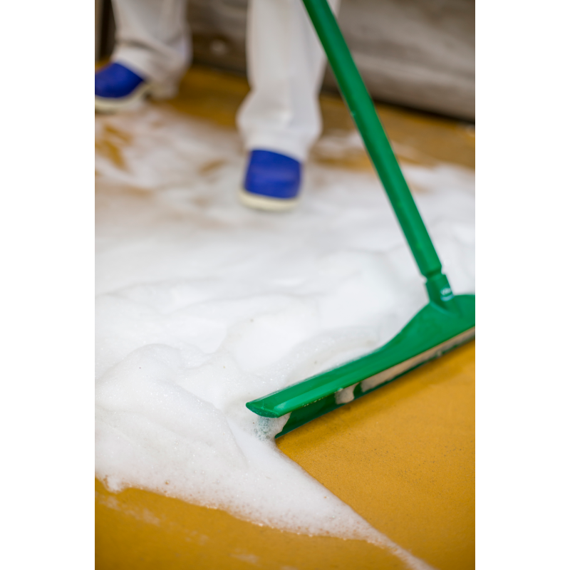 Ultra hygienic squeegee, combines optimum hygiene with effective water removal from walls, floors and table surfaces. The angled blade allows the squeegee to remove water from corners and other difficult to reach areas. The squeegee’s splash guard ensures that the liquid is not splashed onto the dried surface.