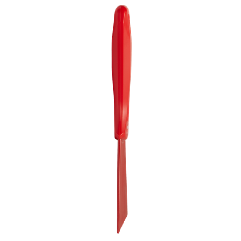 Suitable for loosening stubborn dirt like pastry, chocolate, burnt on food, etc. on smooth surfaces. The nylon blade is a good alternative to a stainless steel blade and can be used on sensitive surfaces to avoid scratches on equipment and sensitive conveyor belts. The hard blade can withstand hot surfaces when used at intervals of max. 2 minutes at a time.