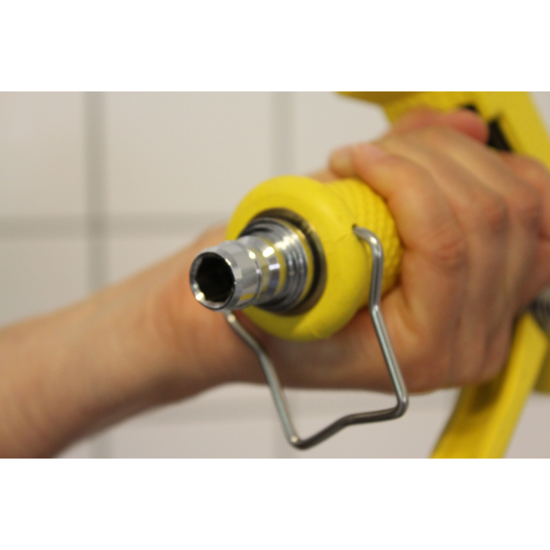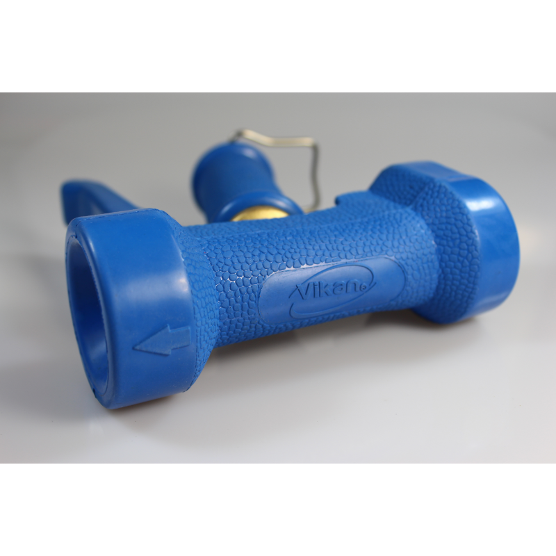 Suitable for cleaning floors and machinery including rinsing off work surfaces and walls after chemical foaming. Squeezing the rubber isulated trigger determines the jet pattern. The water jet can also be adjusted using the screw at the end of gun. The arrow on the gun shows the water spray direction. Use 0712, 1/2" or 0715, 3/4" hose nipples to be screwed into the bottom of the gun.