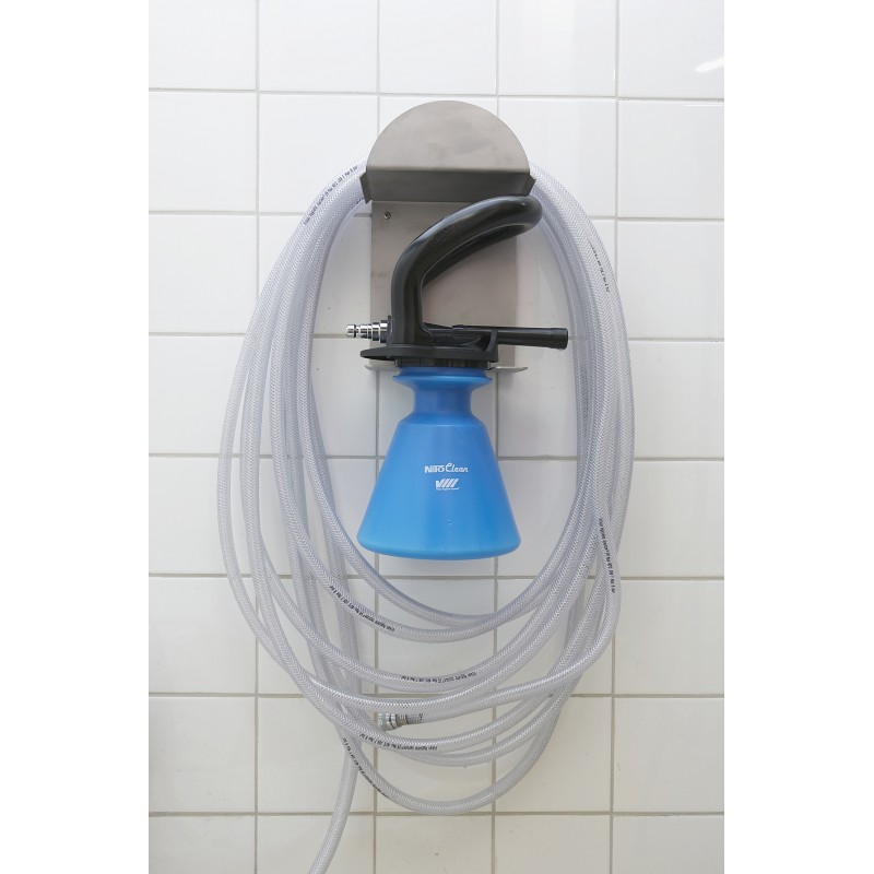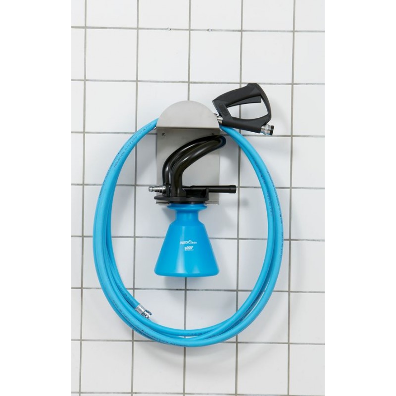 Hose and foam sprayer suspension for wall mounting. Max. 20 meter hose.