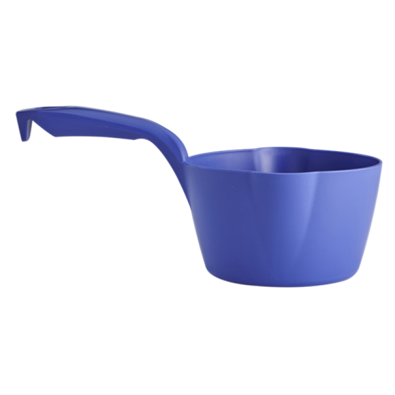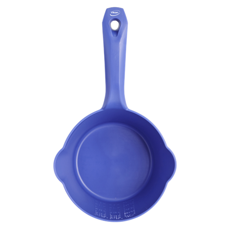 Lightweight and durable, this ergonomically designed Round Bowl Scoop features a pouring spout on two sides to enable both left and right-handed users to pour from the scoop. One-piece construction eliminates areas where bacteria can be harboured, and a smooth surface allows for easy cleaning. Ideal for use in food production areas to move food ingredients, liquids, etc. The scoop's interior contains a measuring scale.