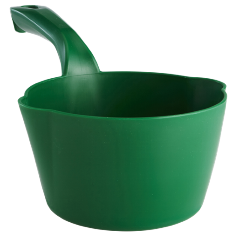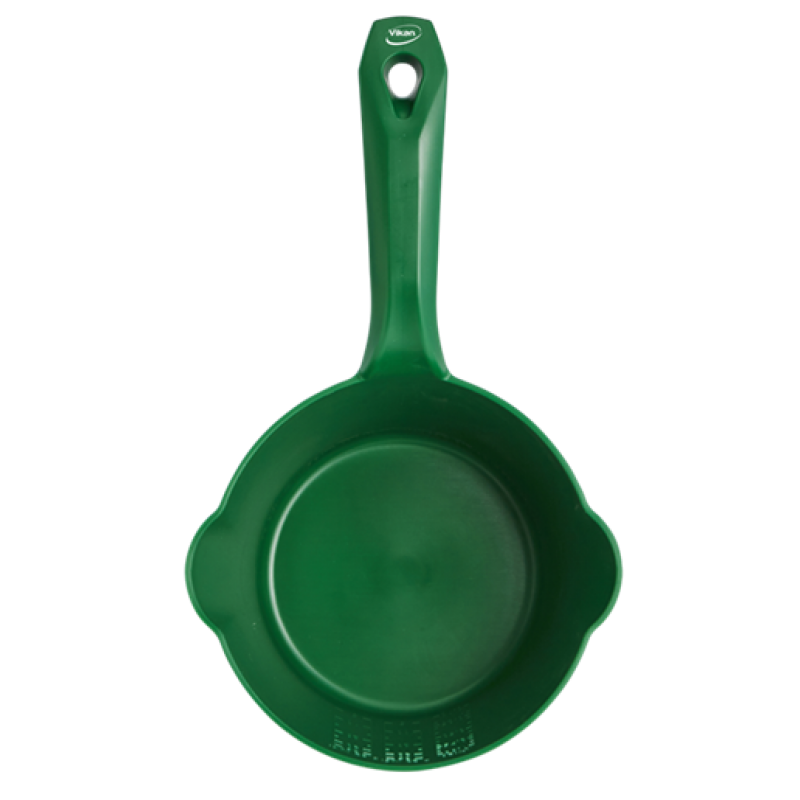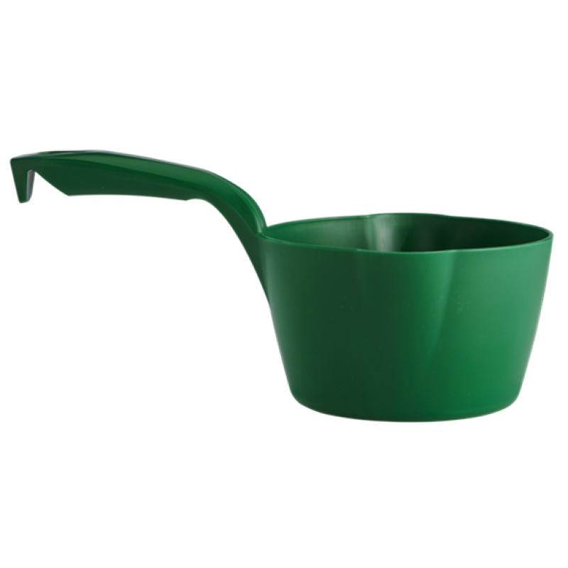 Lightweight and durable, this ergonomically designed Round Bowl Scoop features a pouring spout on two sides to enable both left and right-handed users to pour from the scoop. One-piece construction eliminates areas where bacteria can be harboured, and a smooth surface allows for easy cleaning. Ideal for use in food production areas to move food ingredients, liquids, etc. The scoop's interior contains a measuring scale.