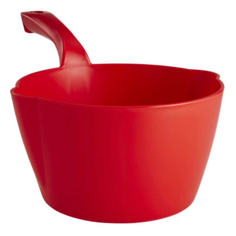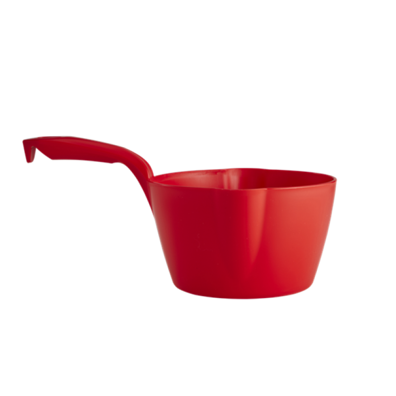Ergonomically designed round bowl scoop is lightweight and durable. Is designed with a pouring spout on 2 sides to enable both left and right hand users to pour from the scoop.Its one piece construction eliminates areas where bacteria can be harboured. Smooth surface makes it extremely easy to clean, ideal for use in food production areas for moving food ingredients, liquids etc. There is a measuring scale inside the scoop.