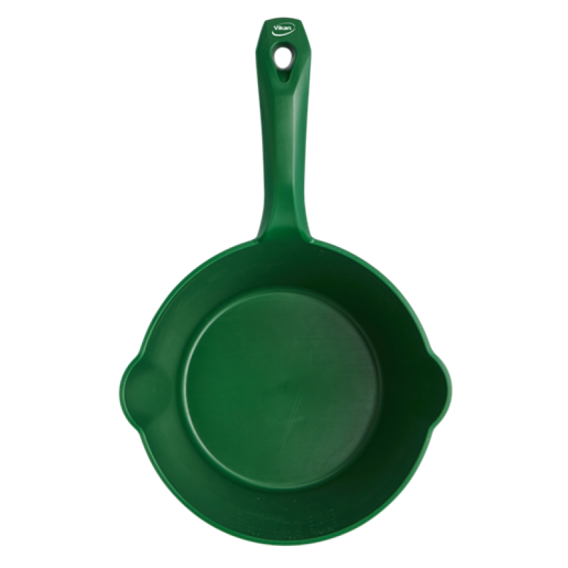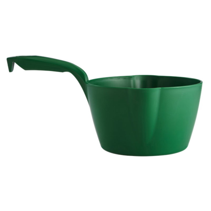 Ergonomically designed round bowl scoop is lightweight and durable. Is designed with a pouring spout on 2 sides to enable both left and right hand users to pour from the scoop.Its one piece construction eliminates areas where bacteria can be harboured. Smooth surface makes it extremely easy to clean, ideal for use in food production areas for moving food ingredients, liquids etc. There is a measuring scale inside the scoop.