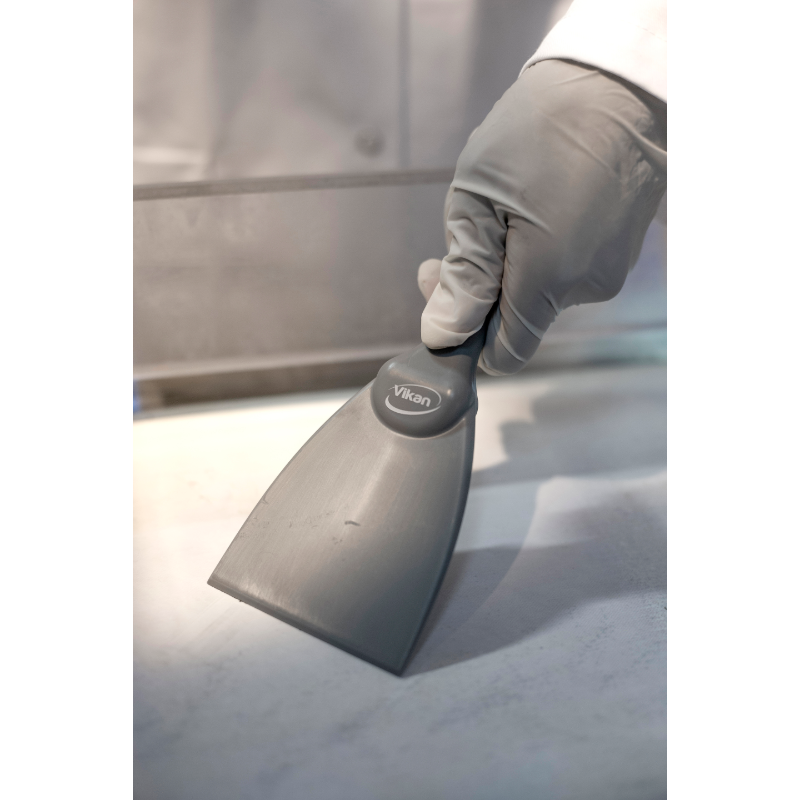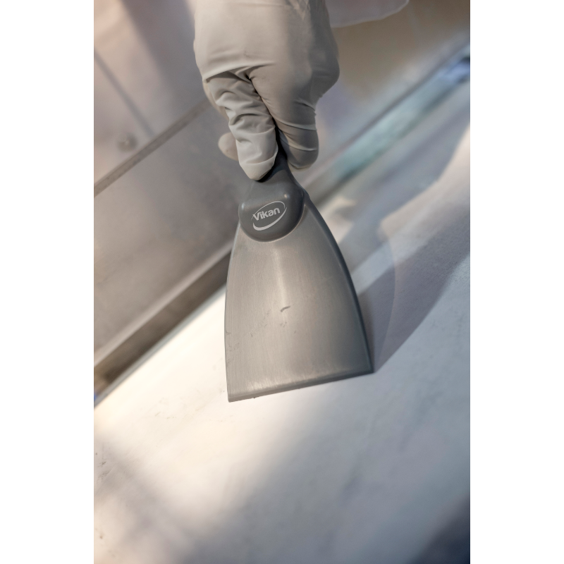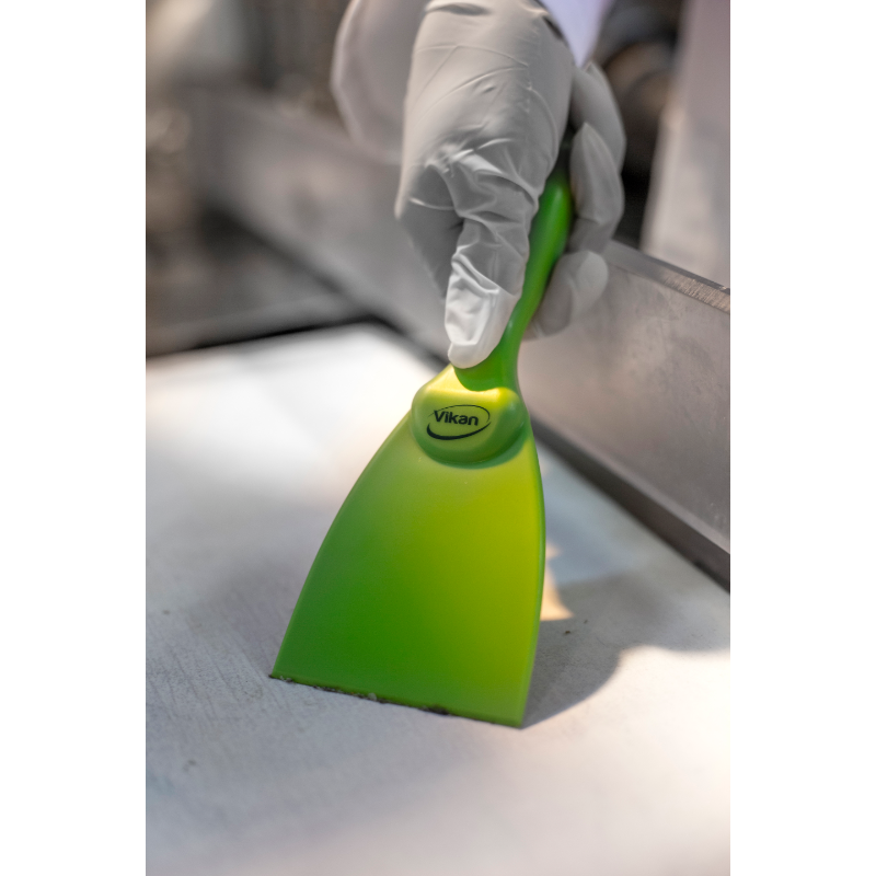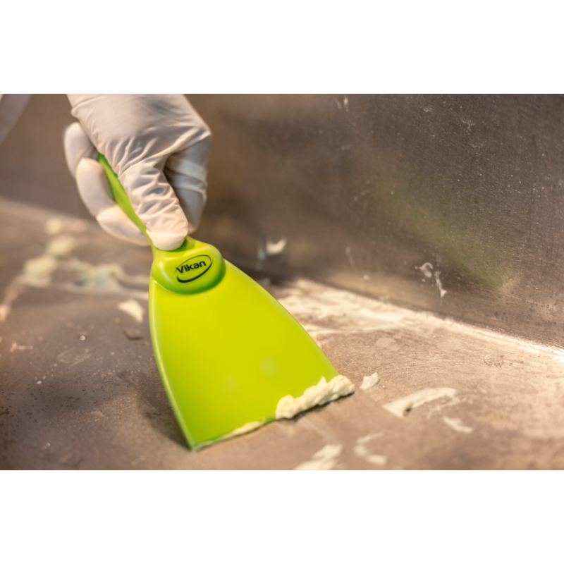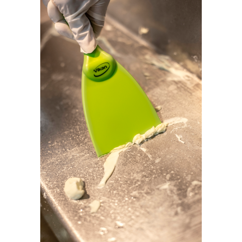 Narrow hand scraper allows access to small areas and rounded equipment like large bowls. It is useful for loosening stubbon dirt i.e. pastry, chocolate, burnt food, etc. The polypropylene construction reduces the possibility of scratching sensitive surfaces.