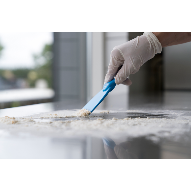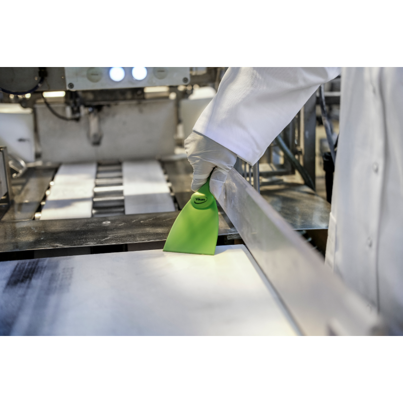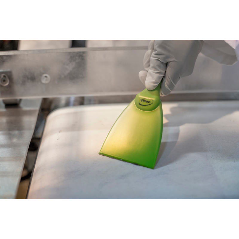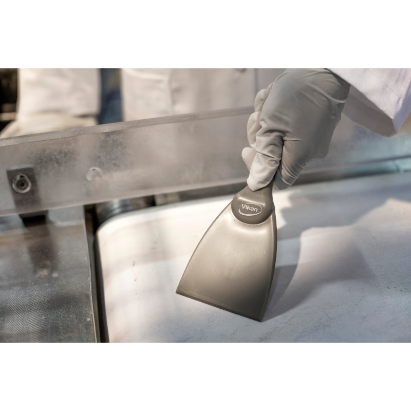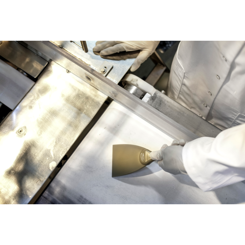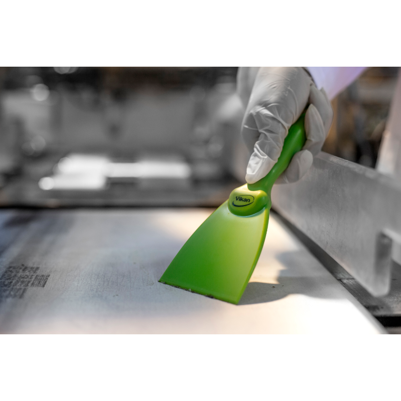 Narrow hand scraper allows access to small areas and rounded equipment like large bowls. It is useful for loosening stubbon dirt i.e. pastry, chocolate, burnt food, etc. The polypropylene construction reduces the possibility of scratching sensitive surfaces.