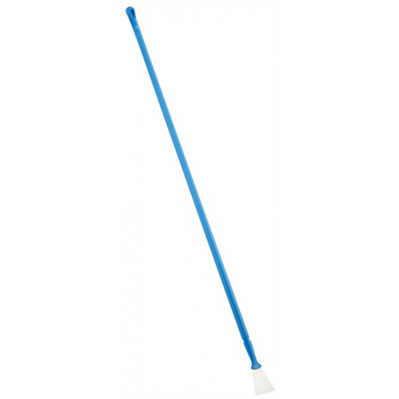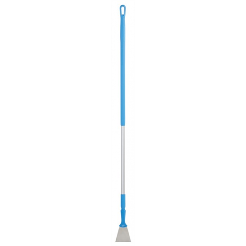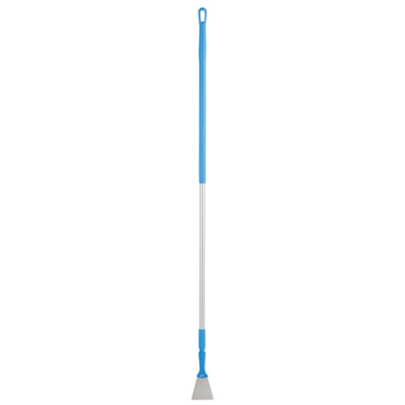 Great for removing hard-to-reach sticky deposits and dried or burnt-on foods or ingredients, this Scraper features a stainless flex steel blade with protective rounded corners, a high-strength attachment, and a threaded handle that fits any Vikan colour-coded extension handle. While not intended for floor cleaning proper, this product can be used to remove lighter soils on floors.